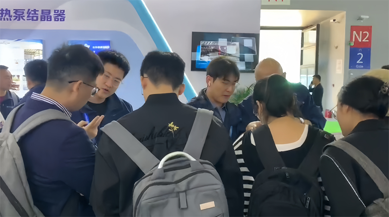 V-HP低溫蒸發(fā)器的展出,不僅為工業(yè)市場帶來了更智能、更高效、更低耗的廢水處理新選擇,也充分展現(xiàn)了朗盼環(huán)境在廢水處理領(lǐng)域的雄厚實力。我司自主研發(fā)的低溫熱泵結(jié)晶器,通過將溫敏性生物合成與結(jié)晶技術(shù)及微流控技術(shù)相融合,實現(xiàn)了在低溫條件下對生物制品的高效合成濃縮與結(jié)晶。這種技術(shù)的應(yīng)用有效降低了高溫蒸發(fā)可能帶來的生物活性物質(zhì)損害風險,從而在市場上填補了技術(shù)空白。為了讓更多的客戶了解我司產(chǎn)品的實力,現(xiàn)場開啟了填寫意向單環(huán)節(jié),我司銷售們應(yīng)接不暇。